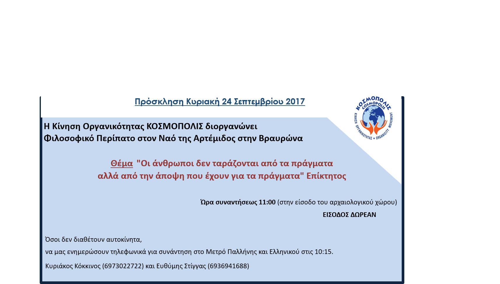 ΚΟΣΜΟΠΟΛΙΣ – Φιλοσοφικός Περίπατος στο Ναό της Αρτέμιδας στη Βραυρώνα! Είσοδος δωρεάν.