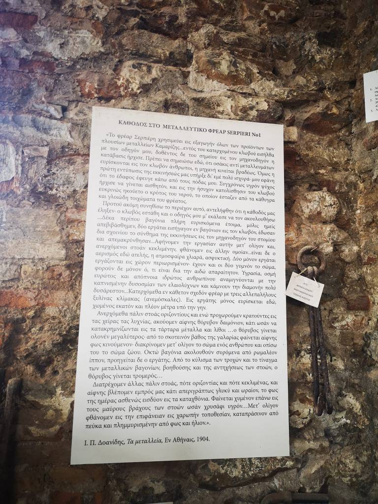 2. Ξενάγηση στο Ορυκτολογικό και Μεταλλευτικό Μουσείο Καμάριζας & στο Μεταλλευτικό Φρέαρ “Serpieri No 1″ (είσοδος 2 ευρώ):